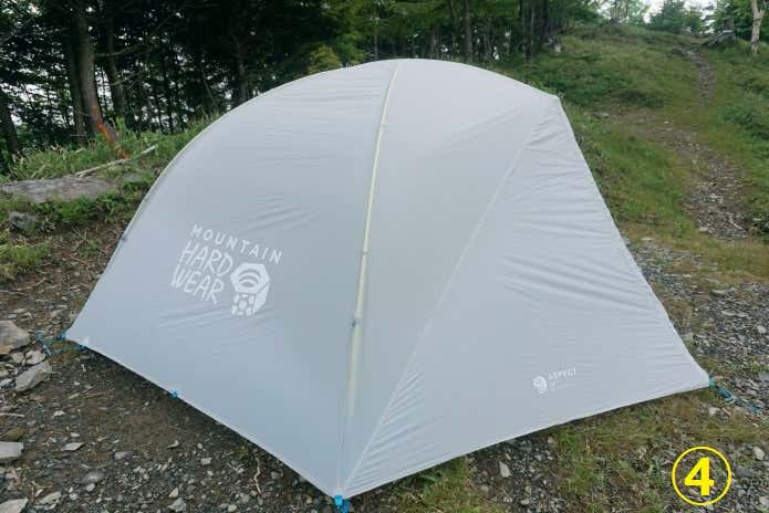 フライシートを被せて入口2箇所をペグダウン