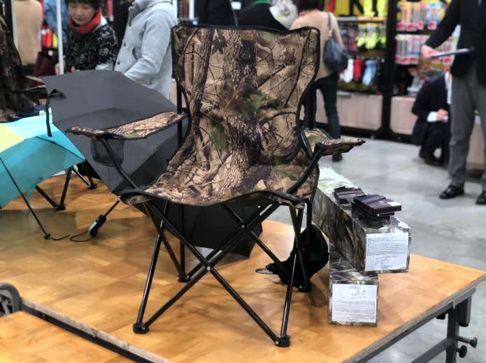 アームレスト&ドリンクホルダー付きのチェアが1,000円以下とは…! カモフラ好きにはたまらないのでは!? 製品重量は約2kg、耐荷重は約100kgです。