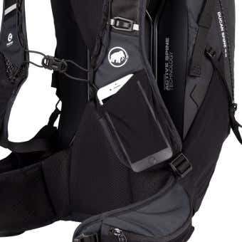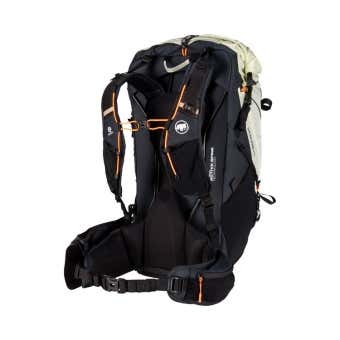 背面部分には、昨年登場した「Mammut Active Spine Technology」を搭載。荷重を最適に分散し、歩行時の横揺れも抑制。歩行のエネルギーを効果的にサポートしてくれます。さらに、伸縮性のあるチェストストラップが完璧なフィット感を実現。