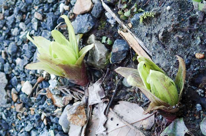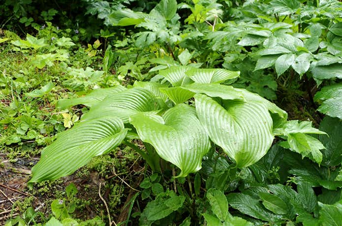 - 【見分けるポイント】新芽を毒のあるバイケイソウやコバイケイソウと間違えやすいですが、地面から芽が出たばかりのものは避け、茎が伸び始めてからのものを採るようにすれば間違えません。バイケイソウやコバイケイソウは一本の茎が立ち上がって伸びていきますが、ギボウシの仲間は根元から茎が束になって生えます。