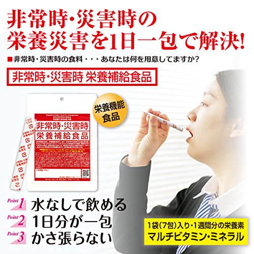 ■賞味期限:5年 1日一包で必要なビタミン・ミネラル類の摂取が可能な、顆粒タイプのサプリメントです。日本初の非常時専用栄養機能食品。水なしで飲める設計は非常用ならではの工夫です。