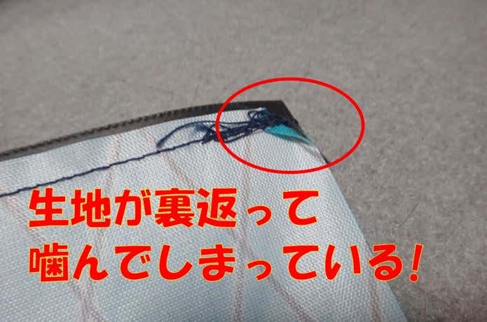 ガーーン!やっちゃいました……。生地が裏返って噛んでしまって、変なことに。