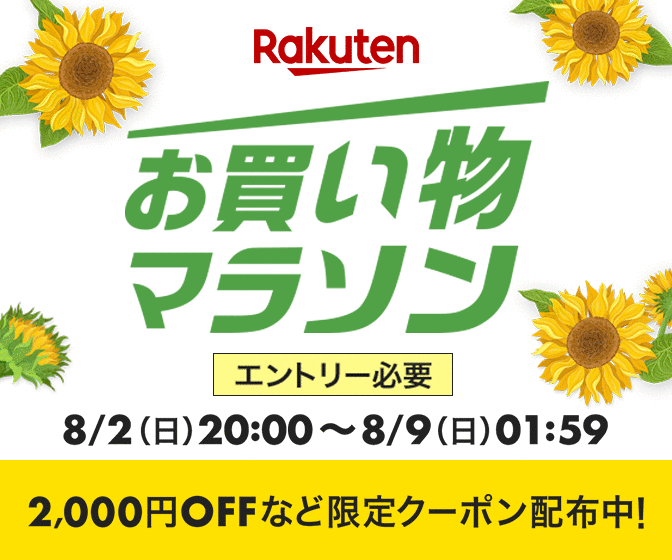 8/2(日)20:00~8/9(日)1:59の期間、楽天お買い物マラソンが開催!