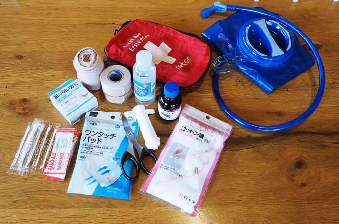 それと、とても重要なのが「予備水」です。患部を洗浄するのに清潔な水は不可欠。余れば飲み水にもできますし、万が一のビバーク時にも有効。これらを備えておくだけで、いざという時の安心感がまったく違ってきそうですね。