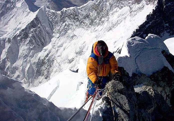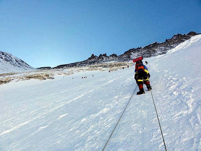 C3(7,300m)から上のイエローバンドど呼ばれる岩壁の急な登り。