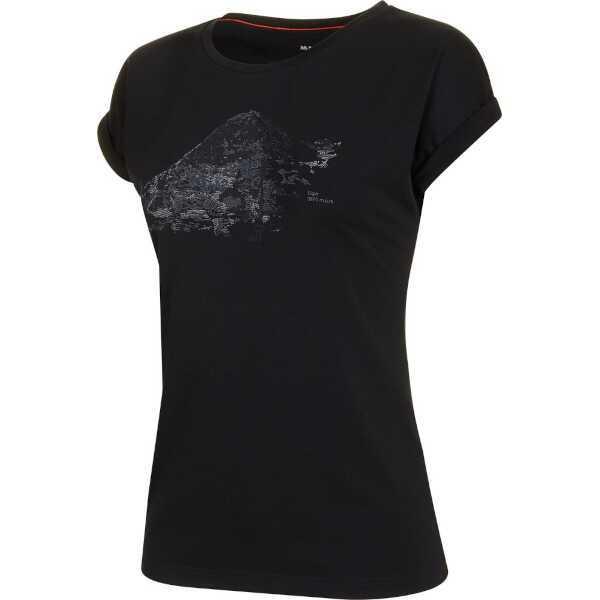 カラーごとに色が違うマルーンベルズの山並みと、マーモットロゴがプリントされたTシャツ。汗をすばやく乾かす吸汗速乾機能付きで、薄手の生地なので春夏登山に最適。杢調のプリントで見た目にもおしゃれ。