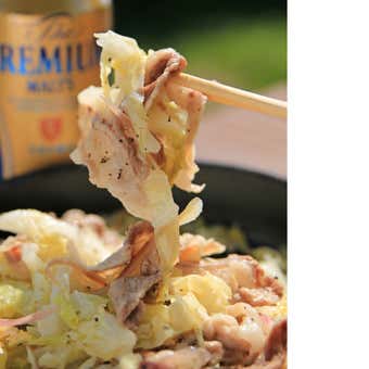 ⑧豚バラに火が通り、キャベツがしんなりしてきたら、