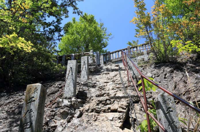 最後の階段はかなり急なのでクサリを使用するなど慎重に登りましょう。