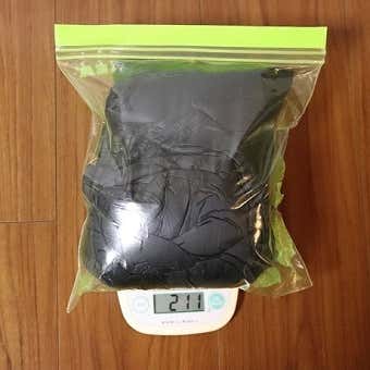 今回は2.5Lサイズの下の写真の袋に入れて、家庭用の秤で計測しました。(袋の重さは計測時にマイナスに、ペットボトルは大きさの比較用です)