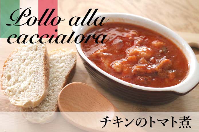 Alla Cacciatora(アッラ・カッチャトーラ)はイタリア語で「猟師風」という意味です。 肉を焼いた後に香草などを加えて軽く煮込んだ料理を指します。トマトを使って煮るものや、酢の味を効かせて白く仕上げるものなど、バリエーションが豊富です。 鶏やうさぎの肉を使うのが一般的で、仔羊を用いることもあるんですよ。(解説:森さん)