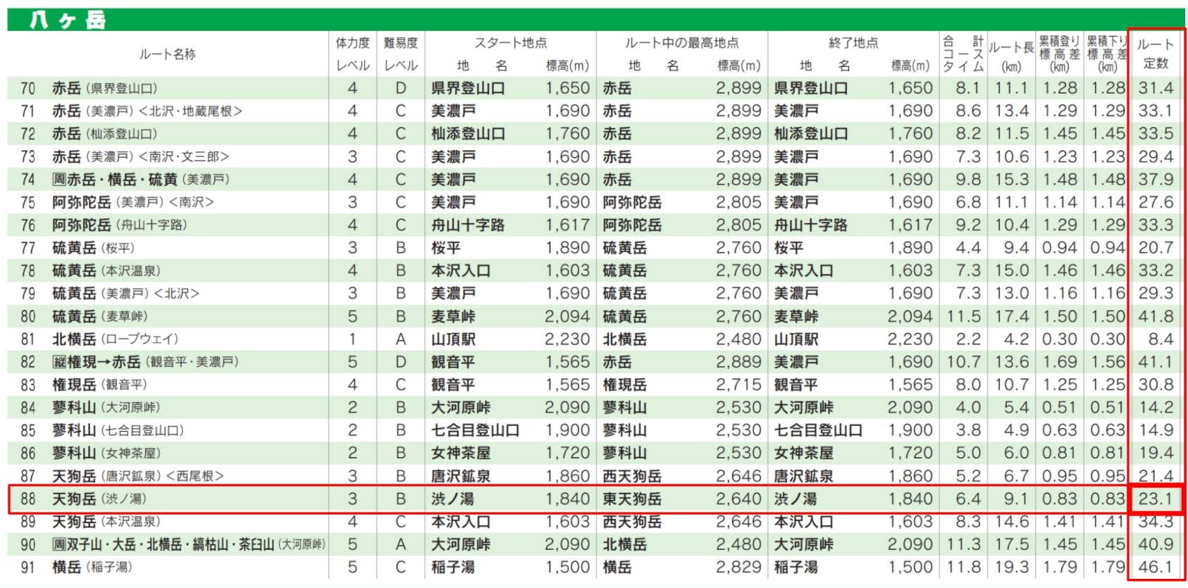 コース定数は、山と渓谷社が出版している分県登山ガイドや各県が公表しているグレーディング表で確認することが可能です。