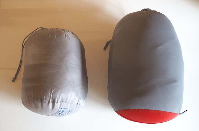 寒さの感じ方は個人差があるのですが、昨年12月に奥多摩「三条の湯」の滝のそばでテント泊をしましたが、ぐっすり睡眠。私の行く冬の低山であれば必要十分でした。重さが300g近くも軽く、2つ合わせてもコンプレッションバッグを使うことで収納サイズを小さくできることを考えると、40Lのザックで冬山テント泊ができるというのは大きなメリットです。