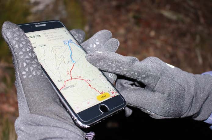 暗い場所では紙の地図は見にくく、焦りや不安などで正常な判断ができない場合もあります。そんな時に役立つのがスマホ用の登山マップ。一目で現在地が把握できるので、道迷いの防止や不安の軽減にもつながります。