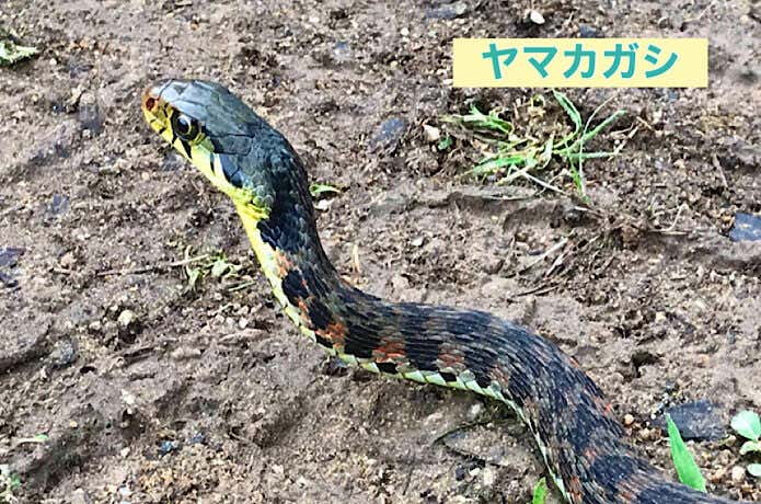 主に4月~11月の間に活動し、オタマジャクシやカエルが多くなるシーズンになると、田んぼ周辺などでは目立つようになります。ヤマカガシの活動時間は日中で、温度にもよりますが午前中の方が多くみられます。