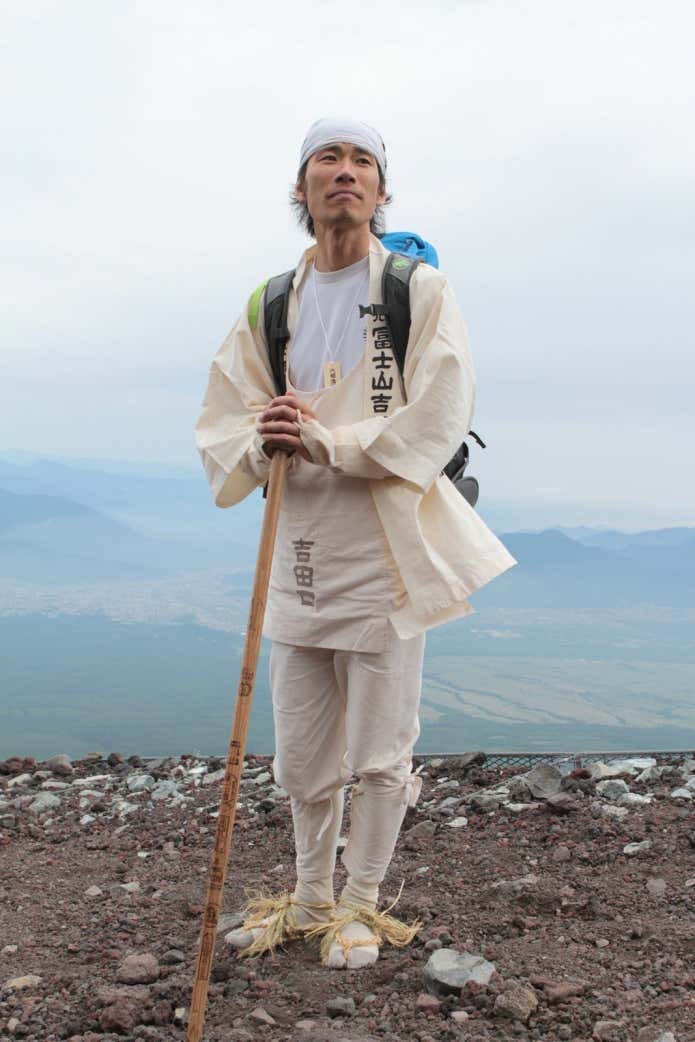 提供:廣田さん(伝統的な巡礼登山のスタイルである白装束に身を包んだ廣田さん)