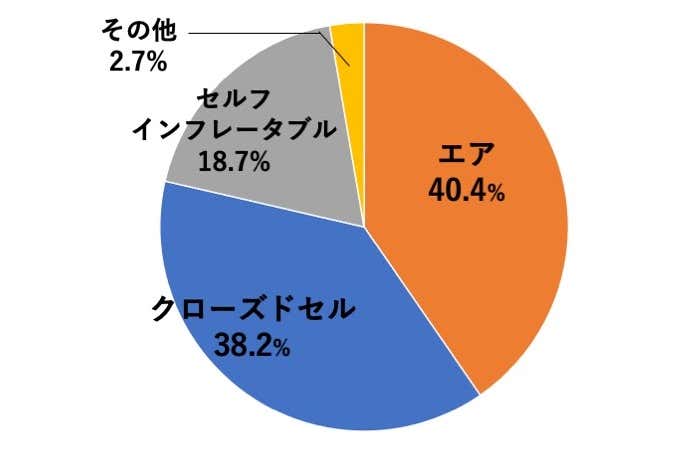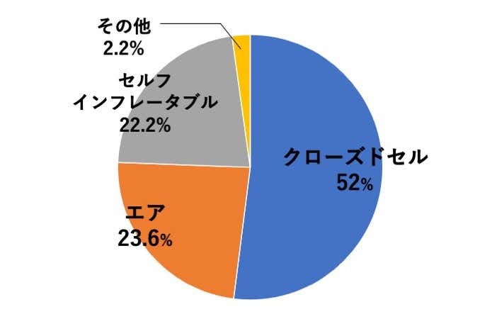 すると、最初はクローズドセルフォームマットを買う人が圧倒的に多いですが(52%)、経験を重ねるうちにエアマットに買い換える人が一定数いることが分かりました。