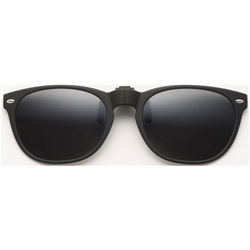 フレームデザインはいくつかありますが、レンズはいずれも偏光タイプで紫外線透過率は1%以下。わざわざコンタクトを買わなくても、少々無理をして度入りのサングラスを購入しなくても、普段のメガネにクリップで装着するだけで、眼から受ける紫外線の影響をしっかりと防ぐことが可能。