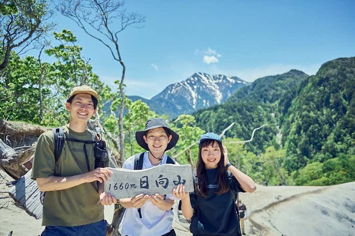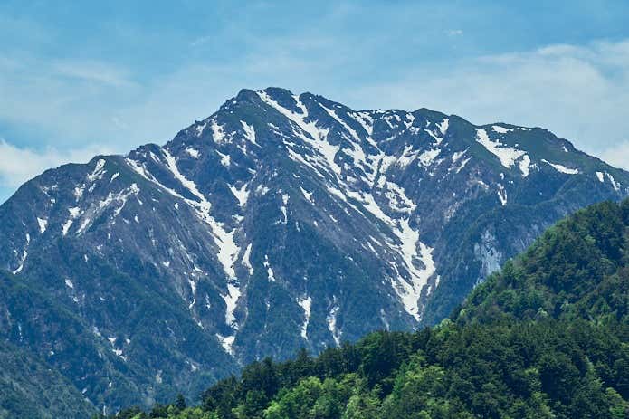 南西方向に目を向けると、堂々とそびえる甲斐駒ヶ岳の勇姿が。単に「甲斐駒ヶ岳が見える」だけでなく、残雪の岩肌・新緑の山肌・白い砂と遠景から近景までのコントラストを楽しむことができるのは、しょーまさんもおすすめする日向山だからこその絶景です。