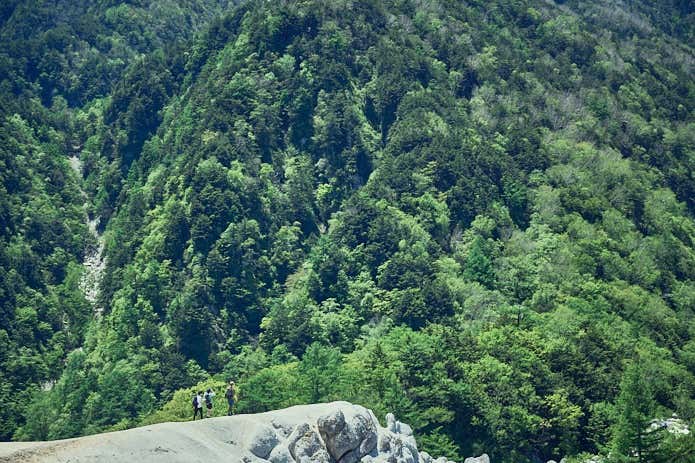 周囲の森はカエデやツツジ類も多く、まぶしい新緑に包まれながら順調に高度を稼ぐ3人。秋の紅葉シーズンにはこれらの木々が赤く色づき、また違った装いを見せてくれます。