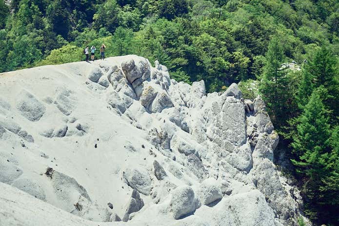 甲斐駒ヶ岳や鳳凰三山でも見られる花崗岩の奇岩がニョキニョキと林立し、その花崗岩が風化した真っ白な砂が敷き詰められた景観は「天空のビーチ」とも称され登山者に人気。さらにそこに至る登山道は樹林帯の尾根をたどる一本道で迷いやすいポイントや危険箇所も少なく、初心者でも比較的歩きやすいルートです。