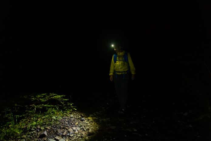 とりあえずではなく、しっかり明るいライトがよいです。夜の山、森のなかは、本当に真っ暗、ライトがなければ1m先も見えないくらいです。