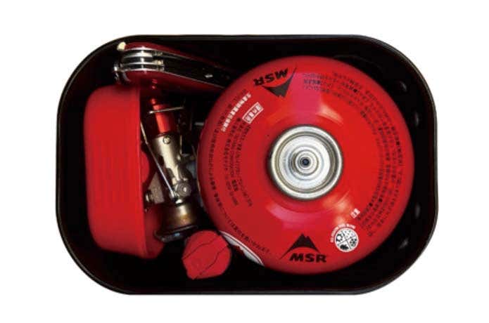 調理に食事に必要な基本道具は、すべてクッカーの中に収まります。110サイズのガスカートリッジはもちろん、フライパンをフタにすれば 250サイズも内部に収納可能。