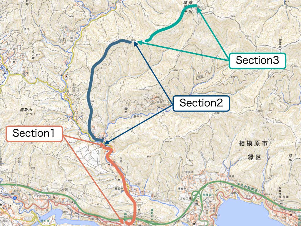 今回は藤野駅から歩きましたが、Section1は便数は少ないもののバス利用も可能です。藤野駅前から神奈川中央交通バス・和田行に乗車して約5分で到着します。