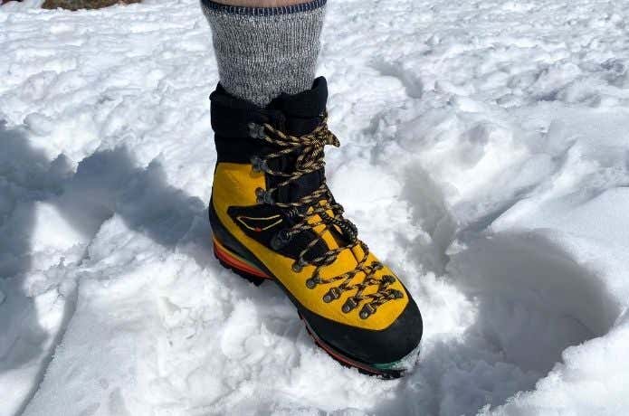 - 保温性:履いてみてどれだけ暖かいかをチェック。分厚さ・ウールの配合量等によって変わりますが、寒い雪山ではやはり一番大切にしたいところ。