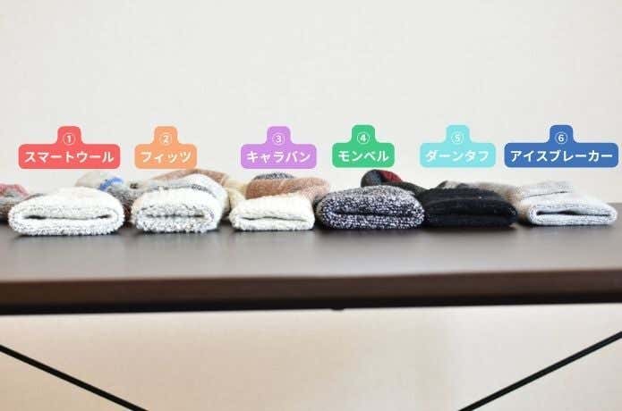 メーカー | ①スマートウール | ②フィッツ | ③キャラバン | ④モンベル | ⑤ダーンタフ | ⑥アイスブレーカー |