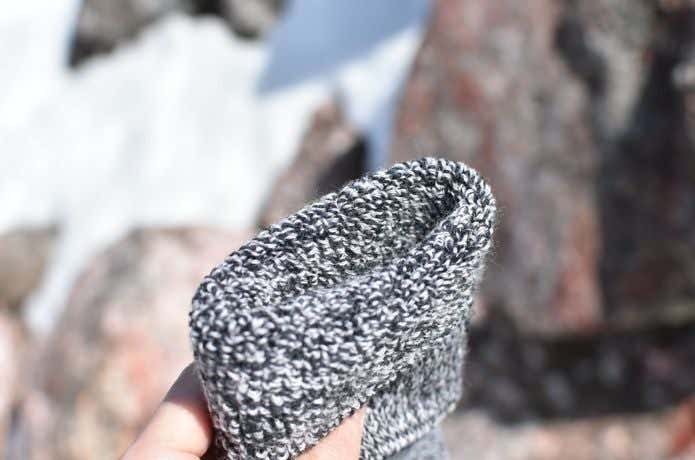生地が極厚でしかも密度も高いからか、抜群の吸湿性を感じさせる製品です。他製品では指と指の間がヌメつくような感覚がありましたが、この製品ではそれがごくわずかでした。保温力もかなり高いため、極寒地でも安心して使用できる靴下といえます。