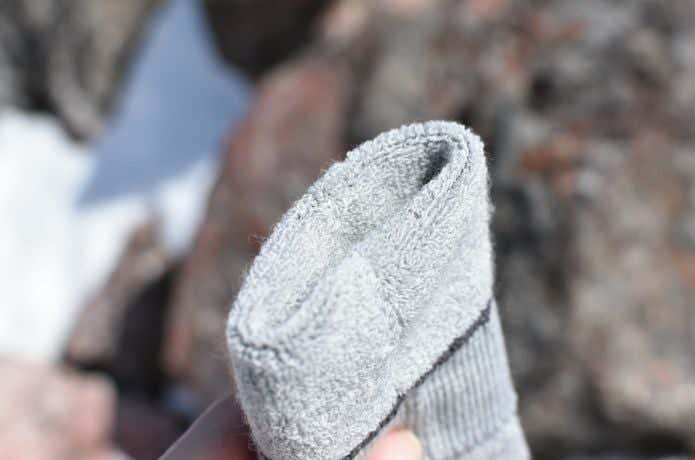 パイルの長さは中くらいで、保温力は他の上位ソックスほどはありませんでした。また足首のカバー範囲も短くなっているため、保温力を重視したい方には物足りなく感じられるかもしれません。