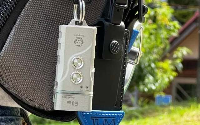 また、E3Plusには専用のリング2つとオリジナルクリップが付属します。スリングバッグにさり気なく付けたり、ネックストラップを使えば首から掛けることもできます。