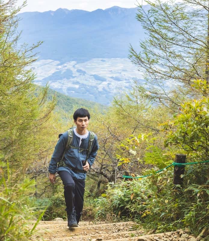 ベースレイヤーの上に山シャツを羽織るくらいで登り始めるのがちょうどいい秋冬のハイキング。