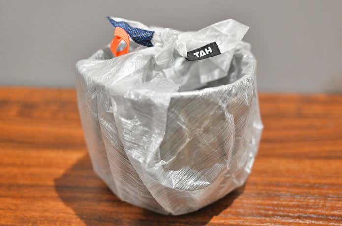 包み袋として、ザックの中に入れても傷がつかないようにクッカーを傷から守ることができます。特定のサイズのものだけでなく、さまざまなサイズのクッカーを包めることも魅力的ですね。