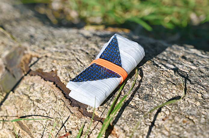 使用しているのは、「DCF(ダイニーマ®・コンポジット・ファブリック)」と呼ばれる、薄いフィルム状の生地。織目・編目がなく水を通さないため、防水生地としてさまざまな登山ギアに使用されています。