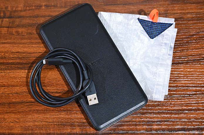 撮影:YAMA HACK編集部 (モバイルバッテリーとコードを包んだ様子)