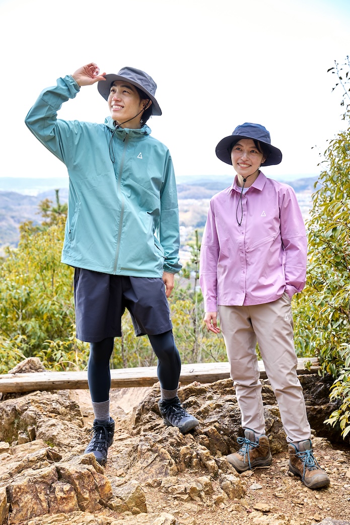 男性:エイガ―ライトJKT(MNT)、女性:ベルクシャツ(PNK)