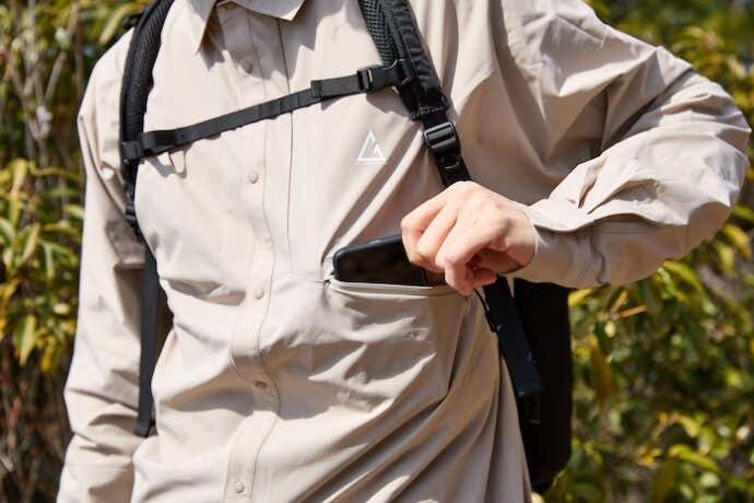 少しコシのある生地は腕まくりがしやすく、登りなどで熱くなったときには、袖を捲れば簡単に体温調整ができます。