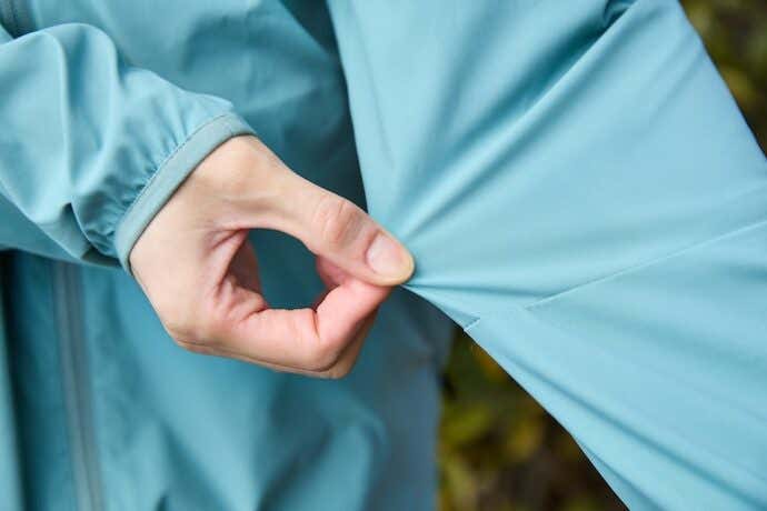 撥水性のある表地は、ちょっとした小雨をしのぐことができ、朝露の着いた草や葉などによる濡れも軽減できます。