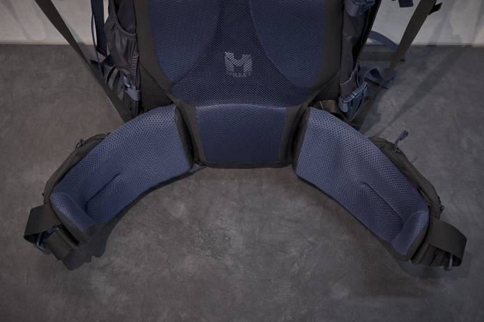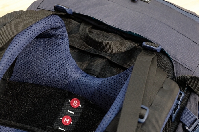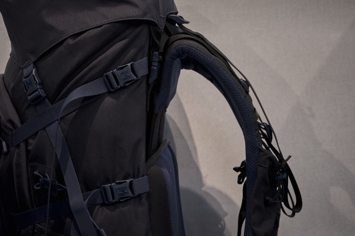 林さん:サースフェー NXの50L以上のモデルの場合、ショルダーハーネスとウエストハーネスには、あえて硬めのクッション材(EVA)を使っています。