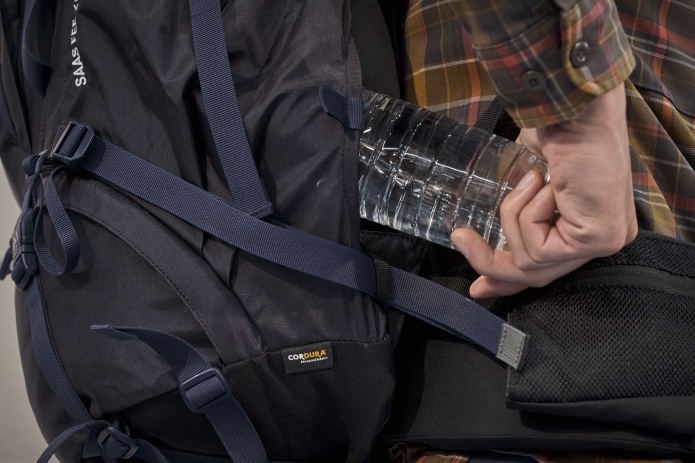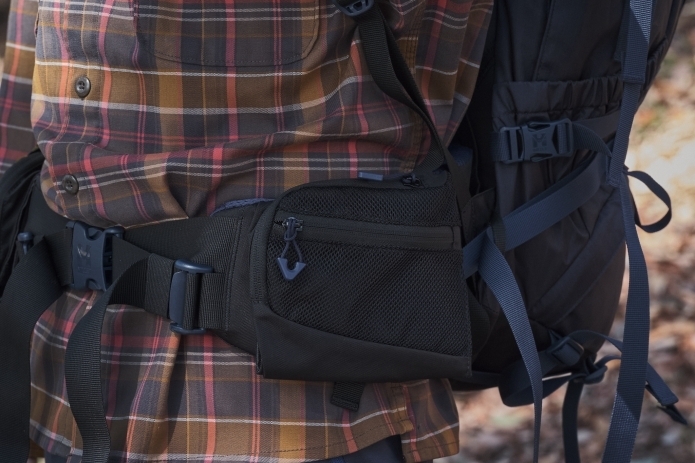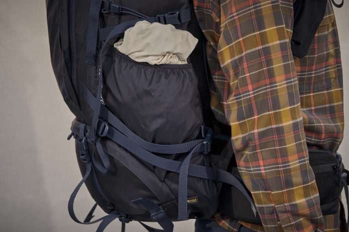 林さん:右手側のサイドポケットは薄手のウィンドシェルやボトルなどを入れる想定で、しまった荷物を落とさないように深めに設計しました。