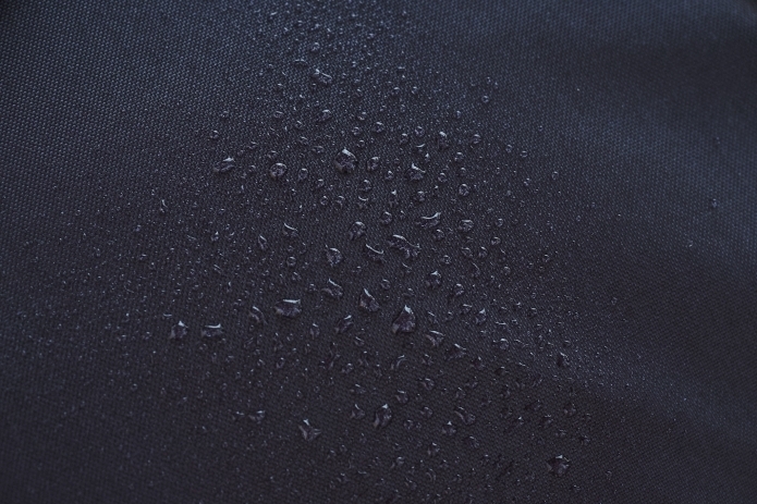 耐久撥水性をもつ生地は、従来のコーデュラナイロン素材にシリコン加工をほどこしたもの。