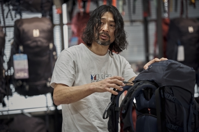 取材に応えてくれたのは、ミレー・ジャパンのブランドマネジメント部マーケティング マネージャー、林勲さんです。長年ミレーのPRを担当し、サースフェー NXについても構造を細部まで熟知しています。