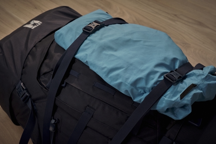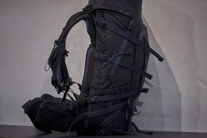 より広範囲にメイン荷室を圧縮でき、なるべくザックを体に引き寄せられるように考えられています。