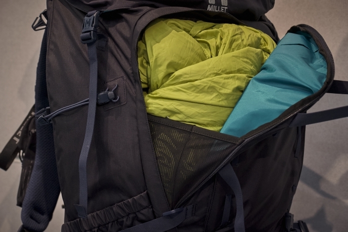 林さん:サースフェー NX 60+と75+にはフロントに逆U字状に開くファスナーを取り付けて、荷物の素早い出し入れを可能にしました。