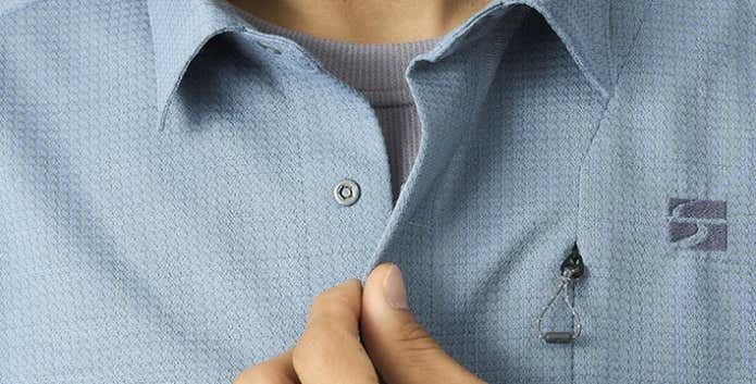 いわゆるシャツは布帛ですが、ファイントラックの新作「ラミースピンニットシャツ」は、ニット生地を採用した新発想。気軽に羽織れてボタンで体温が調節しやすいといったシャツの利点に、ニットならではの動きやすさがプラスされています。