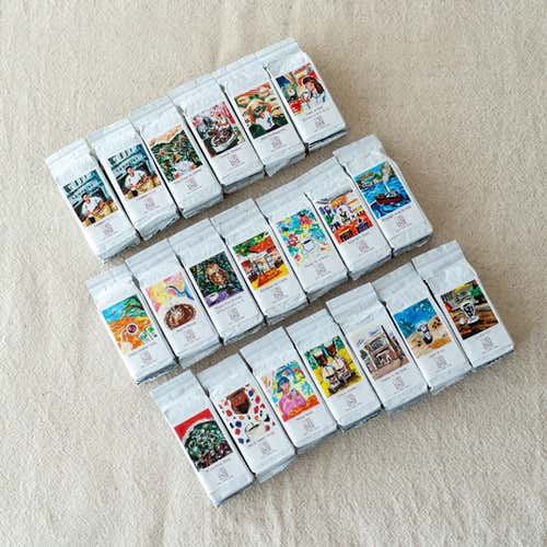 パッケージひとつひとつにオシャレなイラストが。コーヒーのテイストを表現しており、より味わい深く飲むことができます。仲間とシェアしたり、プレゼントにもぴったりです。