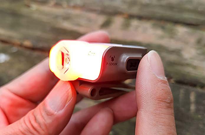 3つめの特長は、赤色光が点灯すること。テント内でも機能するのはもちろん、山小屋泊で夜中にトイレに行く際や、まだ暗い早朝に出発の用意をする時にも、他の宿泊者をライトの光で眩しくさせずに済みます。