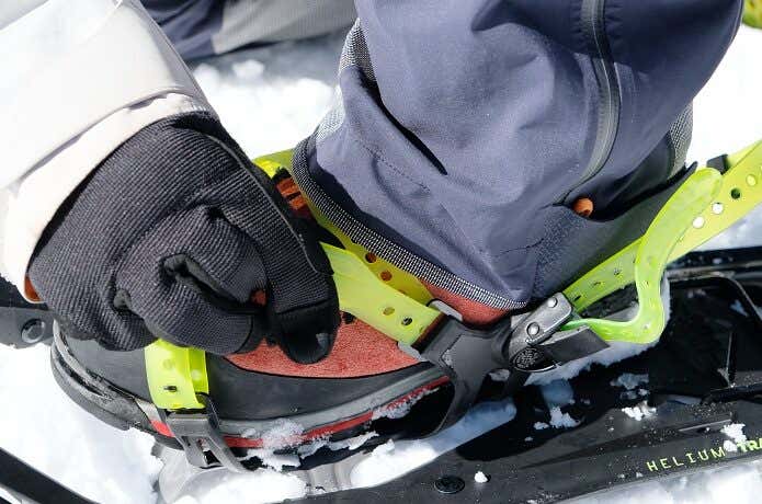 指先がかじかみがちな寒い日でもスムーズに着脱でき、歩行中は緩みにくいバインディングのタイプを選びましょう。