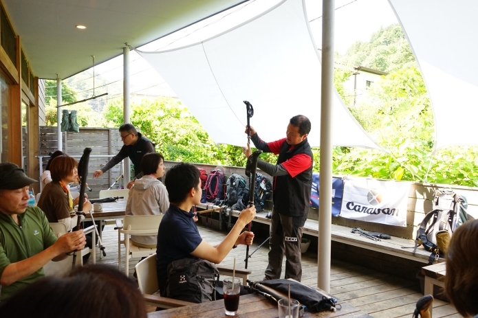 キャラバンでは定期的に講習会イベントを開催しています。実践的に使い方を学ぶと同時に、LEKIのポールを実際に使える貴重な機会です。